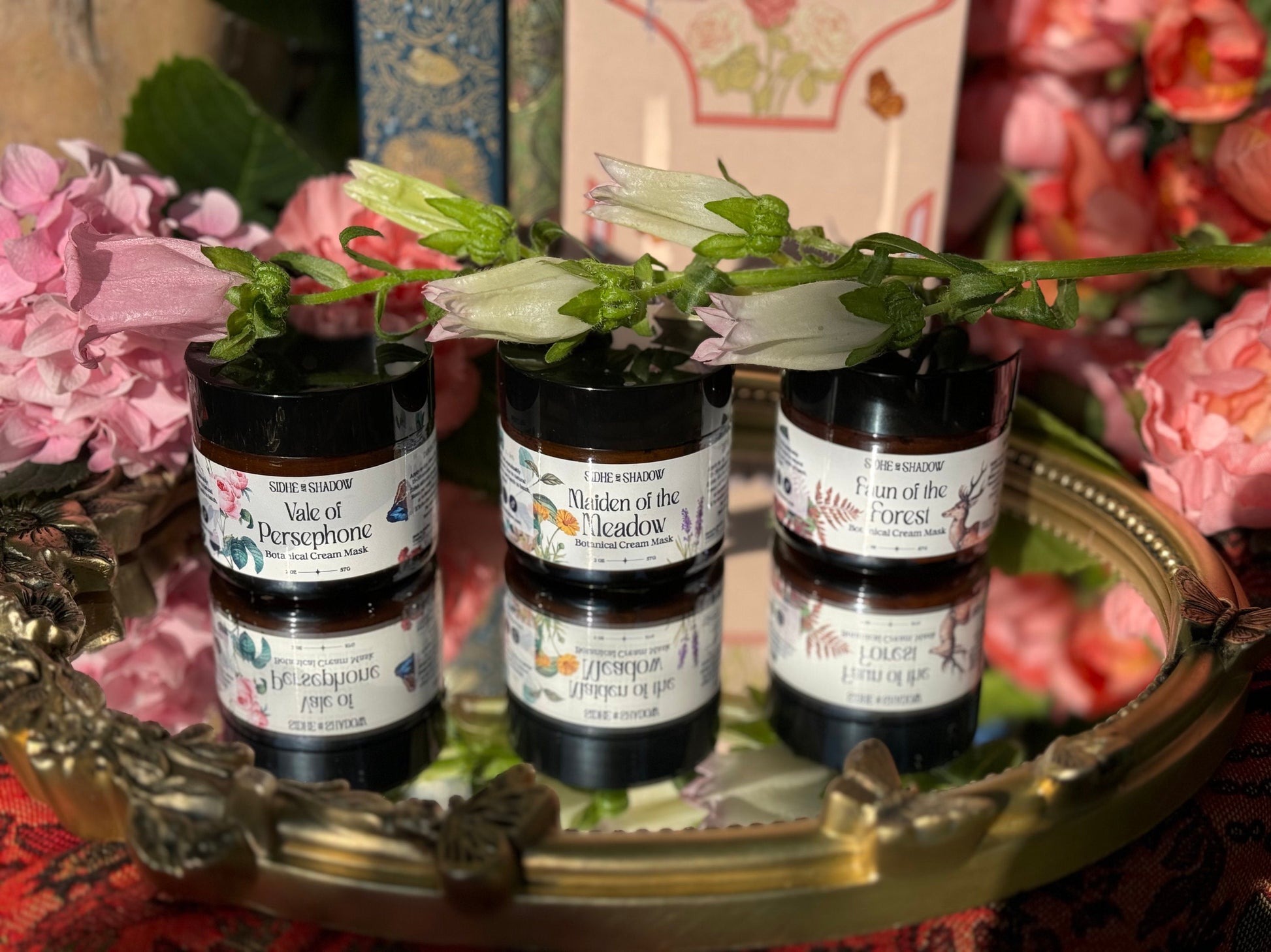 Lightweight serums, creamy moisturizers, and earthy clay masks; immersive self-care rituals inspired by enchanted groves.